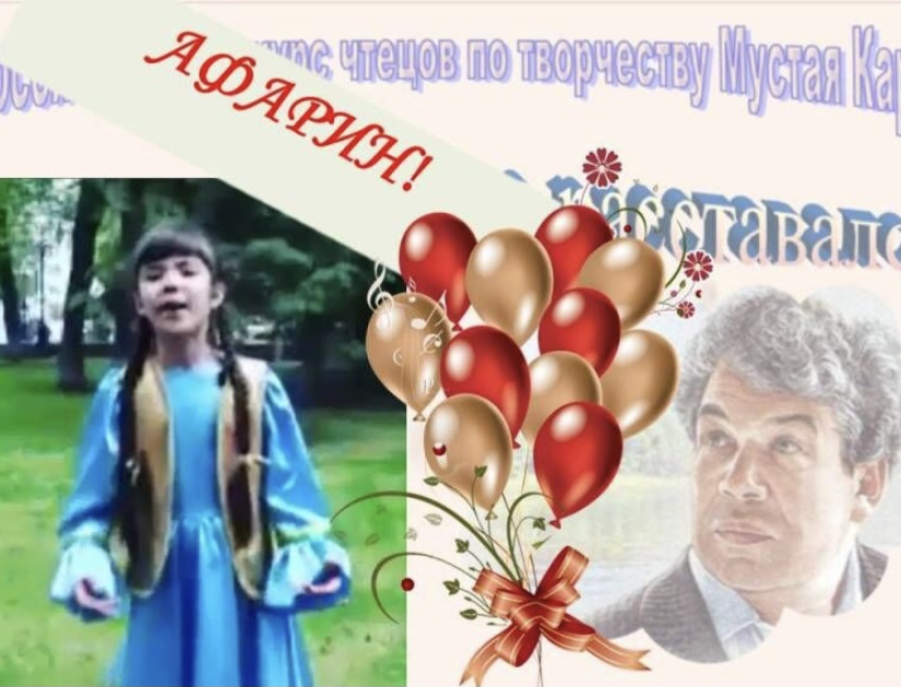 МБОУ ДО ГО г Уфа «Татарская воскресная школа №2» приняла активное участие в этом большом мероприятии. Обучающиеся показали произведения поэта на татарском языке и стали победителями конкурса в возрастной категории от 7 до 18 лет. Так, Зарина Гизатуллина за свое яркое, выразительное, эмоциональное исполнение стихотворения Мустая Карима «Инледэм дэ, буйладэм дэ» завоевала 2-е место. Алия и Нияз Раяновы совсем необычно и артистично преподнесли всем известное стихотворение «Укытыучыма». Они его пропели! За что и удостоились специального приза Фонда им.Мустая Карима. Такой же специальный приз за свое выступление получила и Зарина Гизатуллина. Все участники конкурса стали обладателями дипломов и сертификатов. Поздравляем!