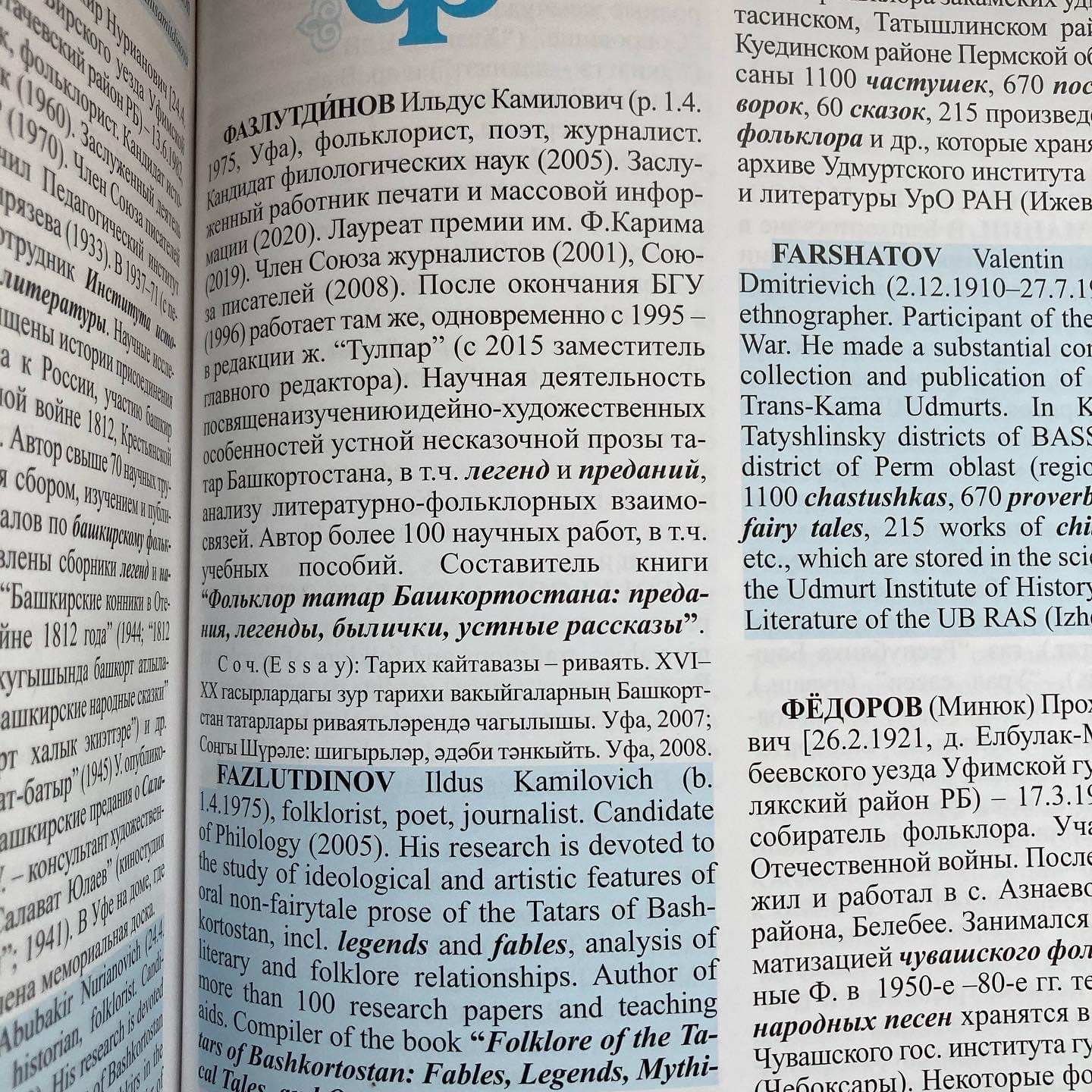 Ильдус Камилович Фазлутдинов является членом научной редколлегии данной книги, большинство статей по татарскому фольклору также написаны им.
