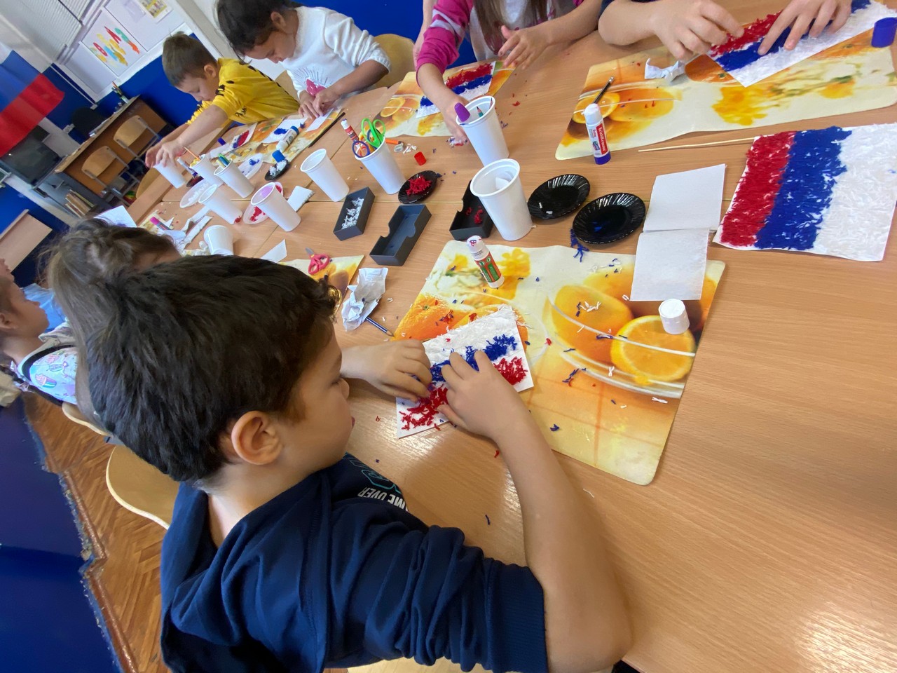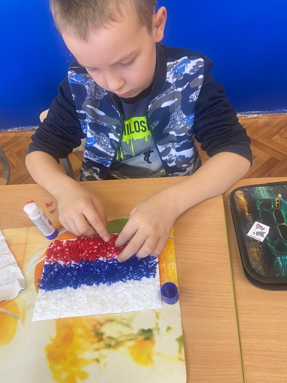 В ходе урока обучающиеся ознакомились с историей возникновения праздника и своими руками сделали флаг России.