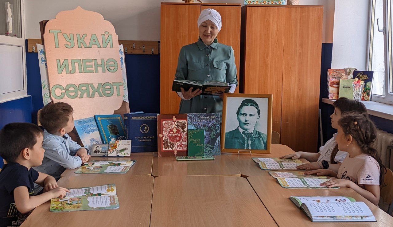 В библиотеке школы была организована выставка произведений Г. Тукая, стихи на разных языках мира и книги о самом поэте. Здесь каждый ребенок мог выбрать и декламировать любимое произведение на татарском, русском языках. В завершении мероприятия прозвучала песня на стихи поэта «Туган тел», которая стала гимном школы.