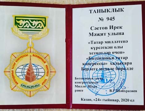 На этой встрече был награждён медалью Всемирного конгресса татар «За заслуги перед татарским народом» наш Саитов Ирек Мажитович.